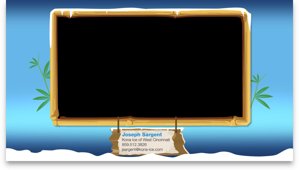 Kona Ice already had a two-and-a-half-minute-long video produced in 1080P HD, however, they did not possess a 4K version. To compensate for the lack of resolution on a 4k panel I created a frame for the video and upscaled the video to 130% just short of any loss of resolution that would be noticeable on the display. I made use of the space at the bottom of the display for the local franchise owner. Keeping within the brand theme I went with cell-shaded bamboo and snow-covered elements and added an approved Kona Ice product shot and logo I acquired from Cameron lead designer with Kona Ice. Once the initial design was created I sent it to Cameron for approval and sign-off before presenting it to Lakota West as part of the total solution.